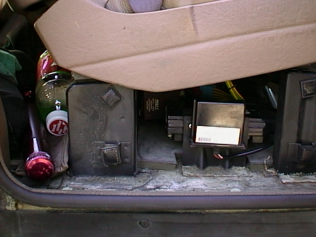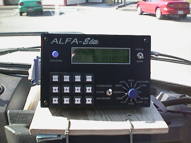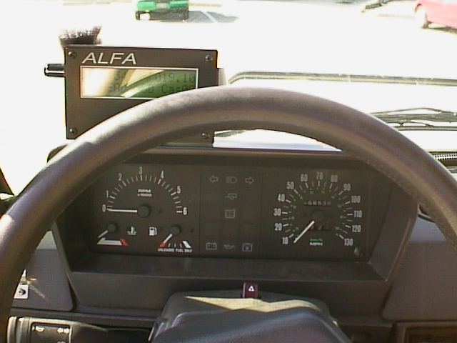 We came to the conclusion that we needed a computer. After research we settled on the Alfa Elite. Installing the computer was a concern for us. We really wanted to do an installation that was easy, clean and very reliable. To achieve this goal we sought to do as little extra wiring as possible and avoid the potentially troublesome external speed sensor and magnets. We hoped to use one of the several factory installed speed sensors but this was not an area we wanted to venture into without careful thought and an accurate map. Our first thought was to use the ABS wheel speed sensors. However, none of the service manuals provided detailed information about the ABS sensors or the ECU. Since the ABS sensor and ECU are very tightly coupled we worried about interfering with this subsystem. In addition, the ABS sensor pulse rate is very high (60 pulses/rotation) which would have required additional electronics to reduce it to a rate acceptable to the Alfa. In contrast to the ABS sensors, the Vehicle Speed Sensor was very well documented in the Range Rover service manual. It clearly described the characteristics of the sensor: six pulses per wheel rotation, each pulse being a 0 to 12 volt transition. We decided this would be our sensor. For reliability we hoped to not have to run wire under the car to the sensor itself. Studying the schematics we found the speed sensor supplies a signal to the Speedometer, Cruise Control Unit, ECU, and Emissions Maintenance Reminder Unit. The ECU and other critical electrics are under the navigator-side seat. We looked for a place under the seat to pick up the Vehicle Speed Sensor signal. In this case Range Rover made our job very easy. The Emissions Maintenance Reminder Unit (the brown part in the center of the third seat photo) has three useful input wires: one is constant +12V, one is ground, and one is input from the Vehicle Speed Sensor. This was perfect. We could have tossed the EMRU and used its connector but we chose to tread lightly and simply tap the leads. The next step was to make the Vehicle Speed Sensor signal compatible with the Alfa speed input. In this case we solicited the help of our official team electrical engineer, Nerfle. By referring to the specifications for the Alfa-supplied Hall Effect sensor Nerfle was able to determine the electrical characteristics that the Alfa expected. He provided us a simple circuit consisting of a resistor and transistor which gives the computer exactly what it requires while preventing the speed sensor and computer from interacting with each other in unexpected ways. Our careful planning paid off. The computer and sensor worked perfectly. |