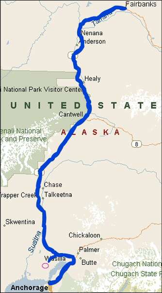 Day 9 - Alcan Winter Rally 2004 ItineraryPrevious Day | Back To Alcan Info | Next Day Day 9, February 26, 350 miles Today we'll probably have a TSD section in the morning as we depart Fairbanks. We'll drive the Parks Highway straight south, past the majestic mountains of Denali National Park to Anchorage. Outside of Anchorage we head to Big Lake in Wasilla for our final two ice racing events. Big Lake has both a small oval track usually used for racing motorcycles or quad-runners and a long road-course used for snow machines. We'll use both courses simultaneously to give us two ice racing challenges. Experiencing two very different courses on the same day will be a challenge. The day finishes with the final few miles to Anchorage and the finish at Continental Subaru. They'll host an official finish line ceremony and have a heated tent where will will relax. After that it's off to the Millennium Alaskan Hotel Anchorage to get cleaned and dressed up for the awards ceremony and banquet sponsored by Subaru. At this point we'll be celebrating the fact that we made it all the way and hopefully looking lovingly at the trophy that we've won!