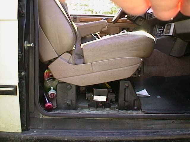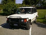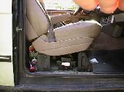 We came to the conclusion that we needed a computer. After research we settled on the Alfa Elite. Installing the computer was a concern for us. We really wanted to do an installation that was easy, clean and very reliable. To achieve this goal we sought to do as little extra wiring as possible and avoid the potentially troublesome external speed sensor and magnets. We hoped to use one of the several factory installed speed sensors but this was not an area we wanted to venture into without careful thought and an accurate map. Our first thought was to use the ABS wheel speed sensors. However, none of the service manuals provided detailed information about the ABS sensors or the ECU. Since the ABS sensor and ECU are very tightly coupled we worried about interfering with this subsystem. In addition, the ABS sensor pulse rate is very high (60 pulses/rotation) which would have required additional electronics to reduce it to a rate acceptable to the Alfa. In contrast to the ABS sensors, the Vehicle Speed Sensor was very well documented in the Range Rover service manual. It clearly described the characteristics of the sensor: six pulses per wheel rotation, each pulse being a 0 to 12 volt transition. We decided this would be our sensor. For reliability we hoped to not have to run wire under the car to the sensor itself. Studying the schematics we found the speed sensor supplies a signal to the Speedometer, Cruise Control Unit, ECU, and Emissions Maintenance Reminder Unit. The ECU and other critical electrics are under the navigator-side seat. We looked for a place under the seat to pick up the Vehicle Speed Sensor signal. In this case Range Rover made our job very easy. The Emissions Maintenance Reminder Unit (the brown part in the center of the third seat photo) has three useful input wires: one is constant +12V, one is ground, and one is input from the Vehicle Speed Sensor. This was perfect. We could have tossed the EMRU and used its connector but we chose to tread lightly and simply tap the leads. The next step was to make the Vehicle Speed Sensor signal compatible with the Alfa speed input. In this case we solicited the help of our official team electrical engineer, Nerfle. By referring to the specifications for the Alfa-supplied Hall Effect sensor Nerfle was able to determine the electrical characteristics that the Alfa expected. He provided us a simple circuit consisting of a resistor and transistor which gives the computer exactly what it requires while preventing the speed sensor and computer from interacting with each other in unexpected ways. Our careful planning paid off. The computer and sensor worked perfectly. |